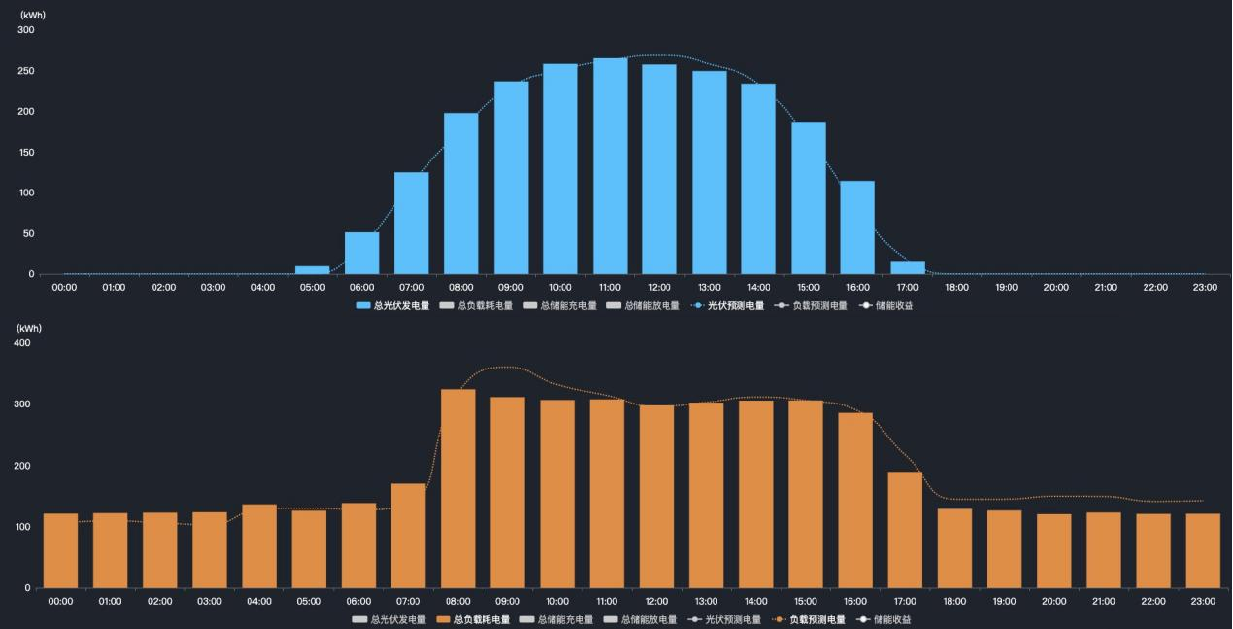 通過開展基于時間卷積神經(jīng)網(wǎng)絡(luò)(TCN)結(jié)合長度記憶時間網(wǎng)絡(luò)(LSTM)的光伏發(fā)電出力和負(fù)載曲線預(yù)測方法等研究,實(shí)現(xiàn)提前預(yù)測光伏的發(fā)電量和負(fù)載曲線,從而根據(jù)儲能的配儲容量,結(jié)合不同時段的電價來自動動態(tài)制定系統(tǒng)充放電策略,保證經(jīng)濟(jì)效益的最大化。光伏預(yù)測平均準(zhǔn)確率≥80%,負(fù)載預(yù)測平均準(zhǔn)確率≥90%,光伏預(yù)測最小周期24小時。
