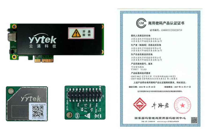 YY0017可信密碼模塊基于可信計(jì)算核心思想和基本架構(gòu),依據(jù)等級(jí)保護(hù)2.0要求,采用國芯安全芯片,是可信計(jì)算密碼支撐平臺(tái)必備的關(guān)鍵基礎(chǔ)部件,作為硬件和固件的集合,可以為整個(gè)可信計(jì)算提供獨(dú)立的密碼算法支撐,支持SM1/ SM2/SM3/SM4等國密算法,符合國密認(rèn)證標(biāo)準(zhǔn),已取得GM/T 0012可信密碼模塊證書。
