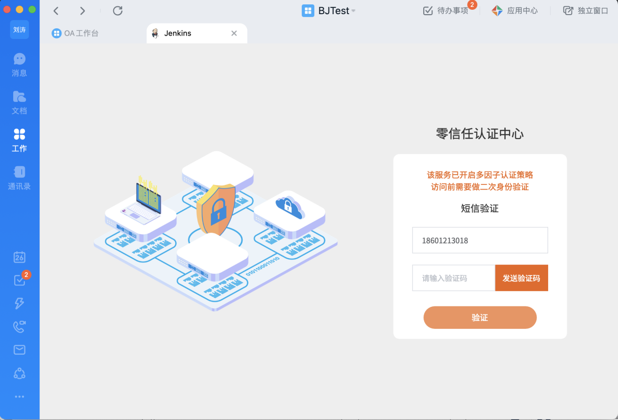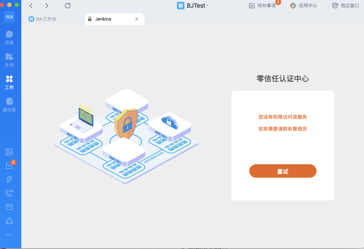 用戶(hù)登錄釘釘工作臺(tái),看到的下面兩個(gè)應(yīng)用即為受零信任保護(hù)的私有部署Web應(yīng)用: