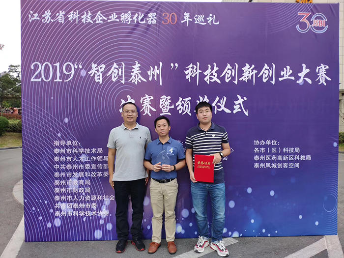 在大眾創(chuàng)業(yè),萬眾創(chuàng)新的號召下,公司積極報名參加2019年“智創(chuàng)泰州”科技創(chuàng)新創(chuàng)業(yè)大賽暨第七屆“創(chuàng)業(yè)江蘇”科技創(chuàng)業(yè)大賽,經(jīng)過專家評審、復(fù)賽篩選等環(huán)節(jié)成功晉級進(jìn)入決賽。