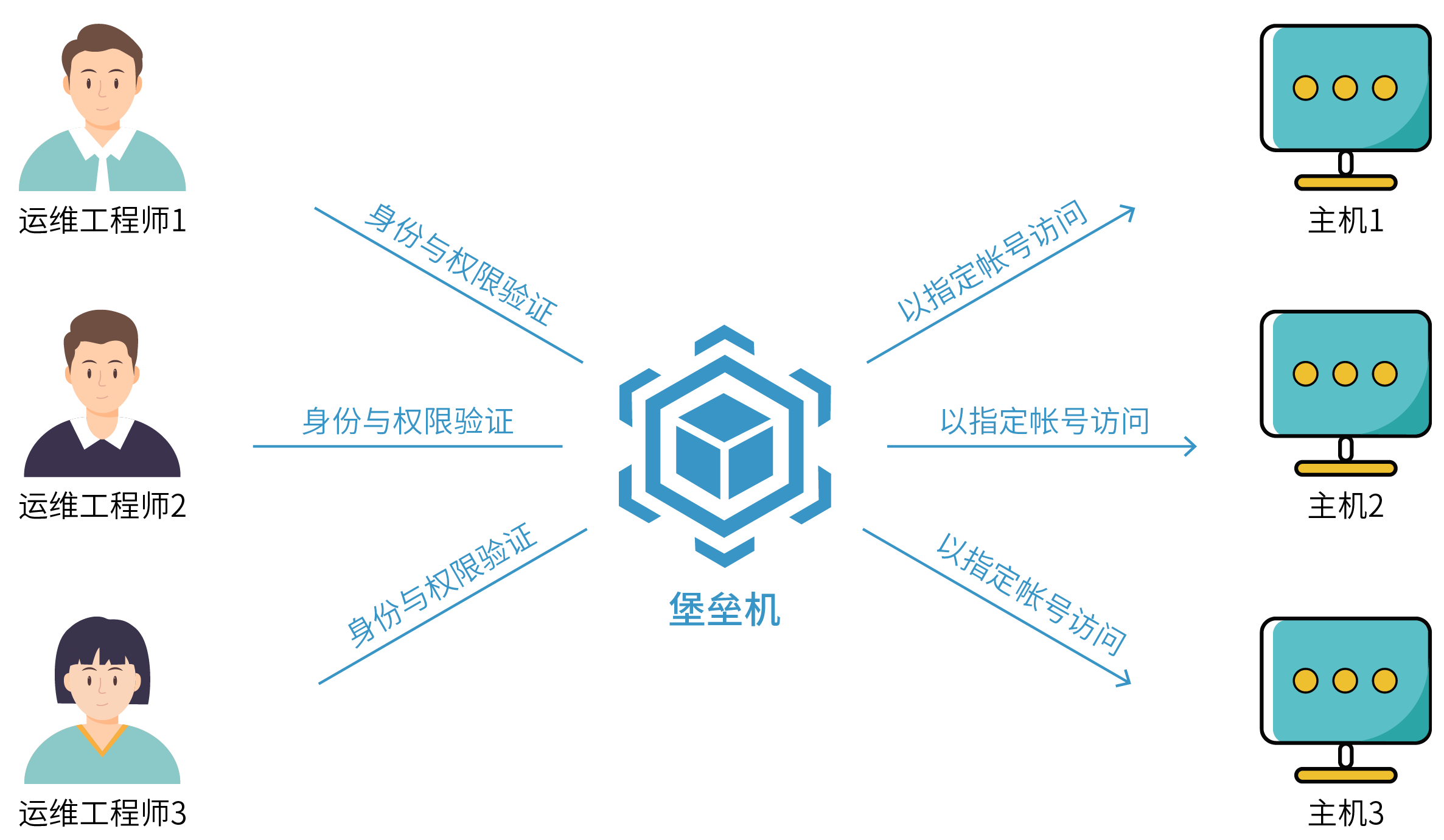 2.維護人員的權限無法基于最小權限分配原則管理,難以實現更細粒度的命令級權限控制,不同背景運維人員的行為給信息系統(tǒng)安全帶來較大風險,系統(tǒng)安全性無法充分保證;