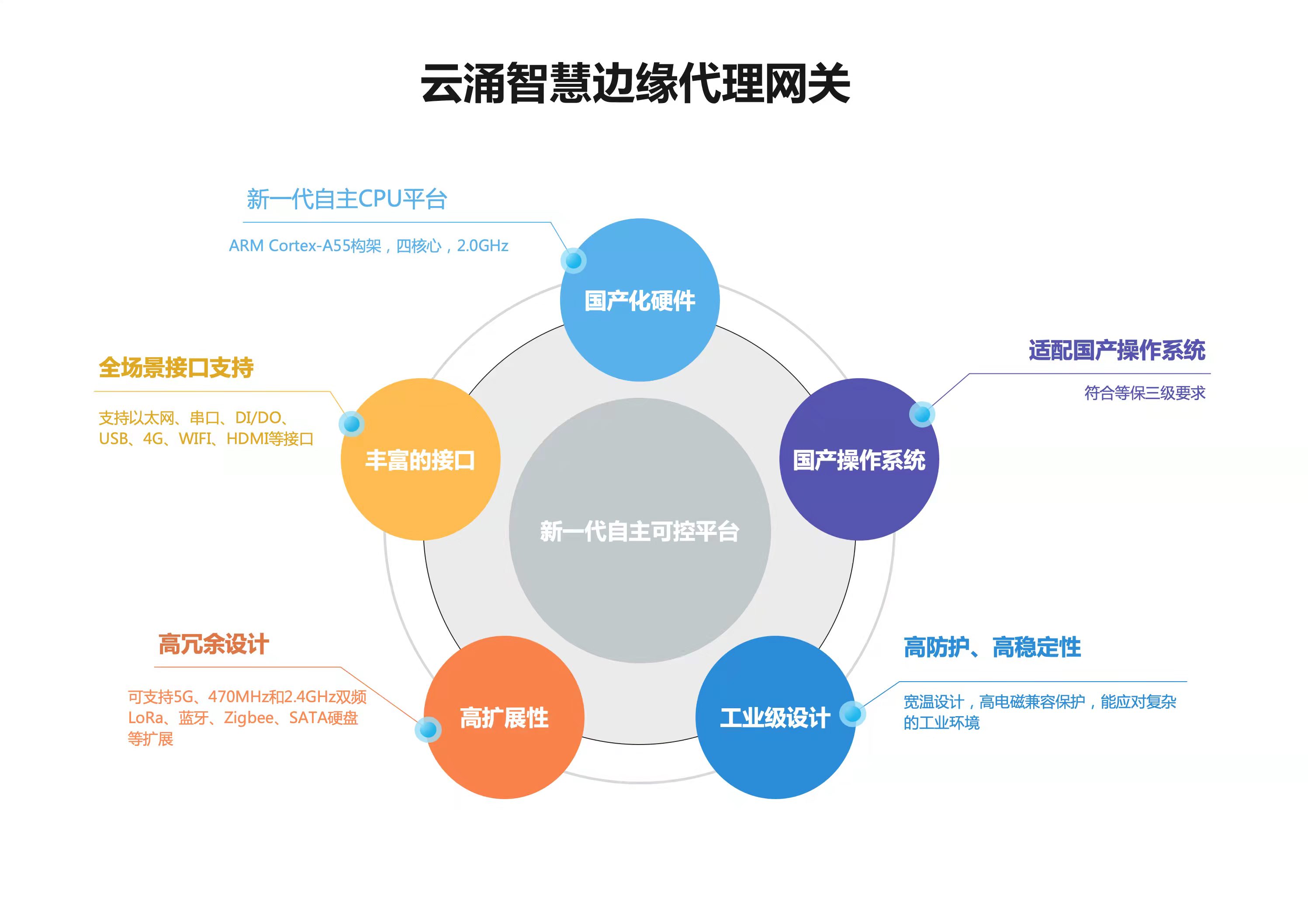 當(dāng)今時(shí)代,隨著網(wǎng)絡(luò)信息數(shù)據(jù)量的大幅度提升以及5G技術(shù)的迅速發(fā)展,為更有效地處理實(shí)時(shí)數(shù)據(jù),基于5G的邊緣計(jì)算技術(shù)應(yīng)運(yùn)而生,且有著廣闊的應(yīng)用前景。而邊緣代理網(wǎng)關(guān)作為數(shù)據(jù)傳輸?shù)年P(guān)鍵設(shè)備,發(fā)揮著協(xié)議轉(zhuǎn)換和數(shù)據(jù)處理的重要作用,為更好地適應(yīng)復(fù)雜惡劣的工業(yè)環(huán)境,保證現(xiàn)場(chǎng)通訊的穩(wěn)定安全,云涌科技推出新一代智慧邊緣代理網(wǎng)關(guān)。
