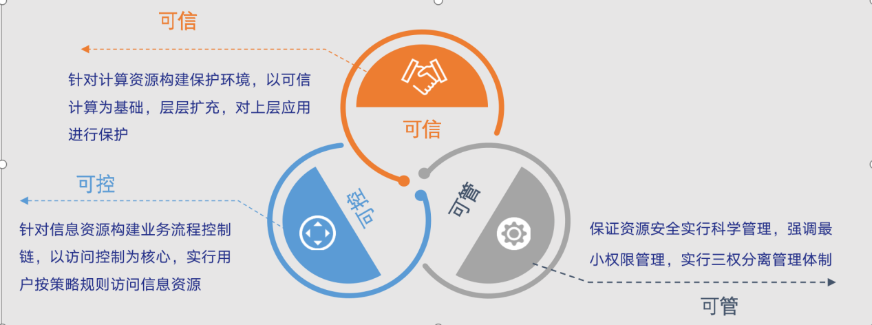 ? ? ? 平臺(tái)從操作系統(tǒng)安全的角度出發(fā),以可信計(jì)算為基礎(chǔ)、訪問控制為核心,圍繞“可信、可控、可管”三個(gè)維度構(gòu)建服務(wù)器主動(dòng)防御體系,從源頭上保證服務(wù)器安全。
