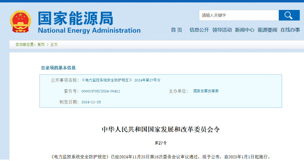 ? ? ? 近日,國家發(fā)展改革委頒布了新修訂的《電力監(jiān)控系統(tǒng)安全防護(hù)規(guī)定》(國家發(fā)展改革委2024年第27號(hào)令,以下簡稱27號(hào)令),自2025年1月1日起施行,原《電力監(jiān)控系統(tǒng)安全防護(hù)規(guī)定》(國家發(fā)展改革委2014年第14號(hào)令,以下簡稱27號(hào)令)同時(shí)廢止。