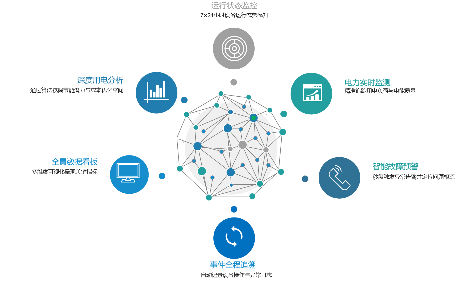 - 智慧能效管理——提供“綜合能源管理云平臺”,實現(xiàn)電能數(shù)據(jù)的自動化采集與可視化,支持用能效率的精準(zhǔn)分析、節(jié)能潛力的深度挖掘及電能質(zhì)量的全面診斷,助力精細(xì)化能源管理。