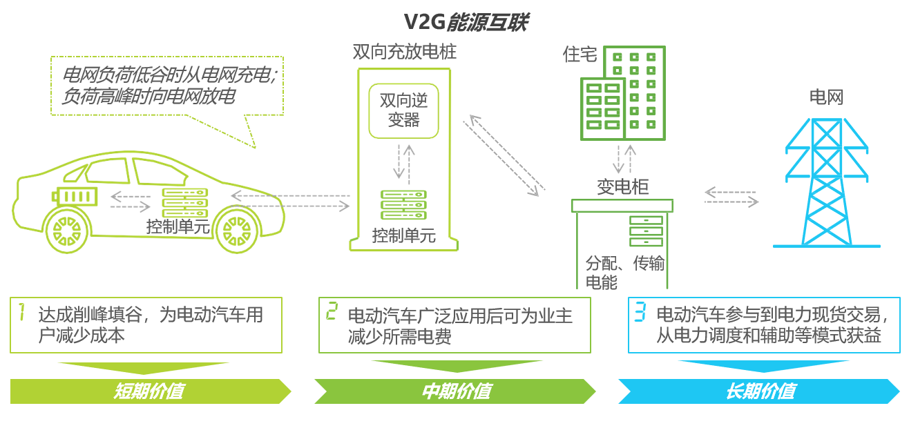 ?V2G模式試點(diǎn)正在進(jìn)行:V2G可達(dá)成車輛與電網(wǎng)之間的能源互聯(lián),實現(xiàn)儲能調(diào)峰、改善電能質(zhì)量、調(diào)整用電負(fù)荷等服務(wù),將成為未來的長期發(fā)展方向。
